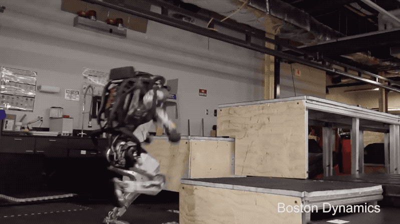 而且,在连续跳跃的过程中 Atlas 可以不断转移自身的重心,使整个跳跃的过程显得十分的自然和流畅。