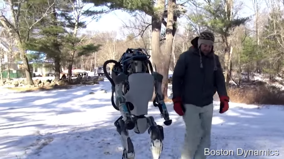 但 Atlas 从第一代开始,就已经可以在雪地这种崎岖不平的道路上「怡然自得」地行走了。