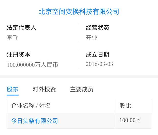公开信息显示,值点属于北京空间变换科技有限公司,而今日头条正是该公司的唯一股东,所以值点是头条系的新产品没跑。