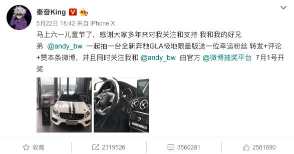 ▲ 秦奋微博抽奖送奔驰.