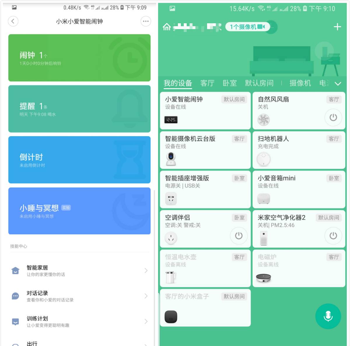 ▲ 左:小米 AI 智能音箱口令;右:小爱智能闹钟口令