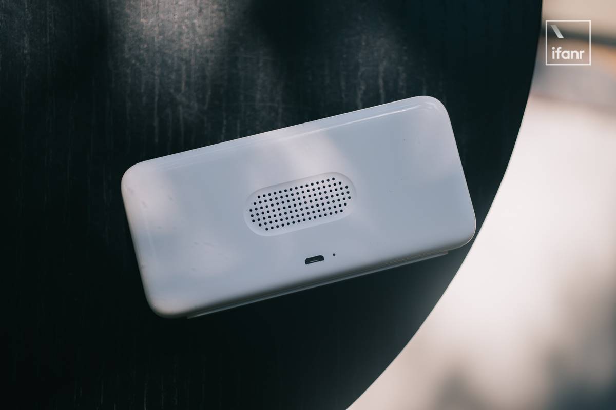 位于背部的则是扬声器、电源接口和复位按键的开孔,但这部分在日常使用时并不会轻易暴露在视野内。整体看来,小爱智能闹钟的外观设计我认为还是能用优雅和精致来形容了。
