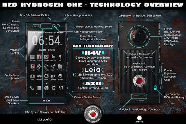 一直跳票的 RED Hydrogen One 手机原定 11 月 2 日以 1195 美元价格发售,近日提前曝光了规格示意图。