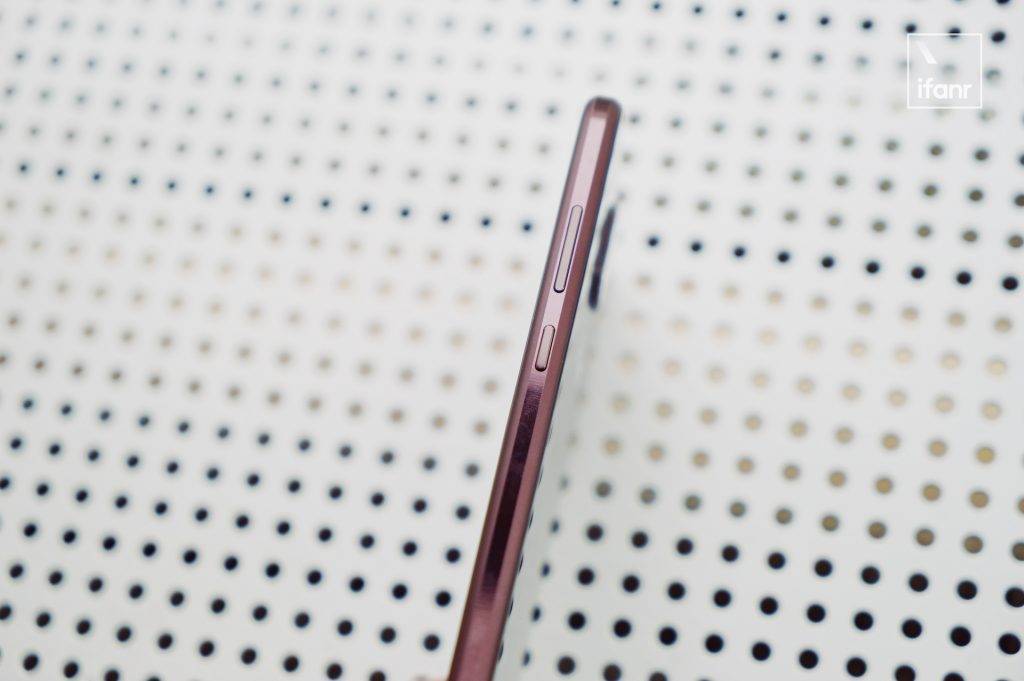 SIM 卡槽在机身左侧稍微靠上的部分,是一个典型的「与或卡槽」设计。支持双卡双待,或者单卡+存储卡拓展。右边的电源按键和音量键手感也比较生脆。