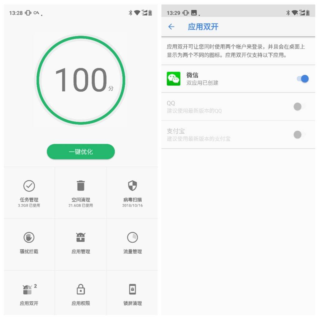 还有一些也算是中国特色功能在 Nokia X7 上得到了体现,比如应用双开(目前支持微信、QQ 和支付宝)、游戏助手和滚动截图等常见的小功能,然后我还看到了手机管家的 app,进去以后发现其实功能上很简洁,很多会跳转到相关的系统级功能设置中,不过如果对这些系统不熟,那手机管家的确是个很好的入口。