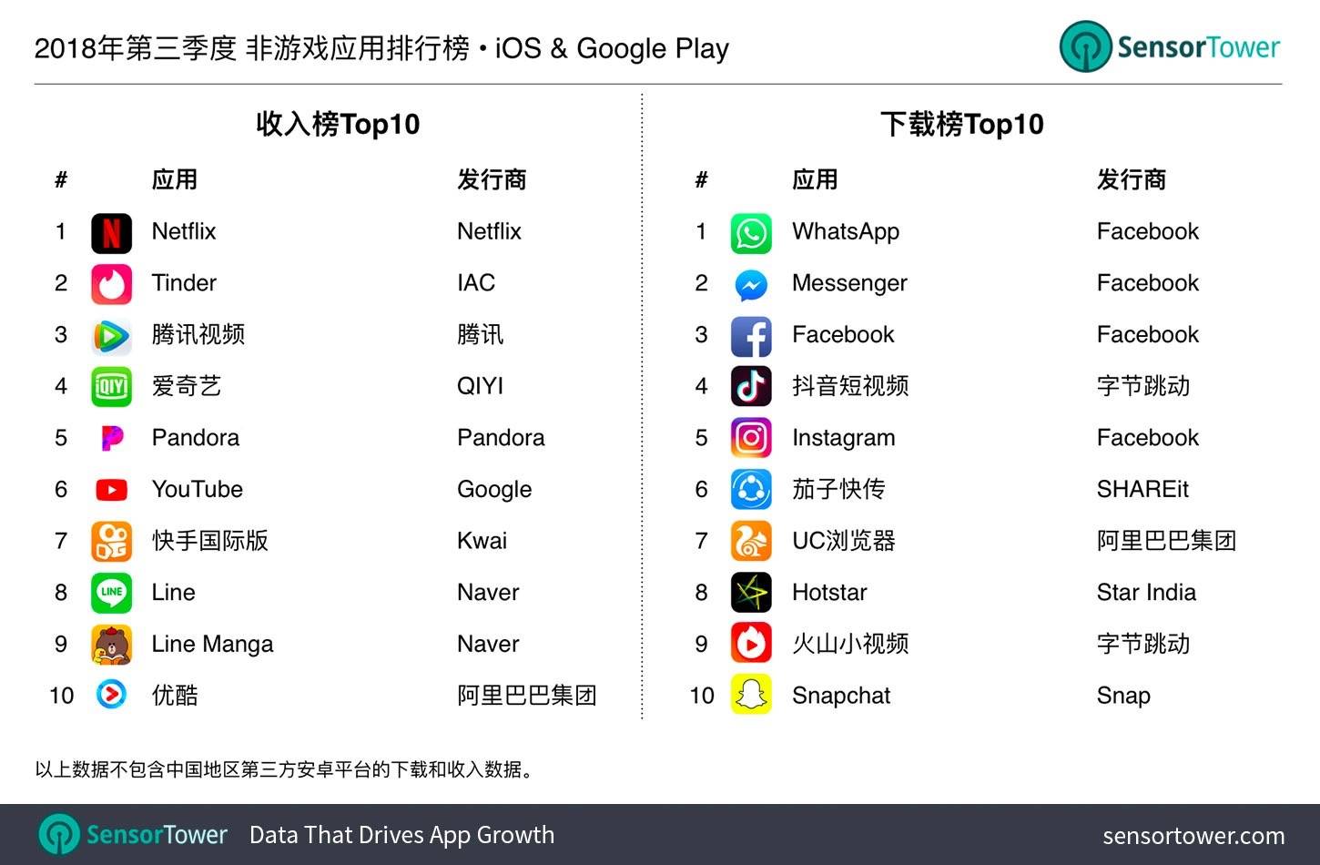 ▲ 非游戏应用排行榜. 图片来自:Sensor Tower