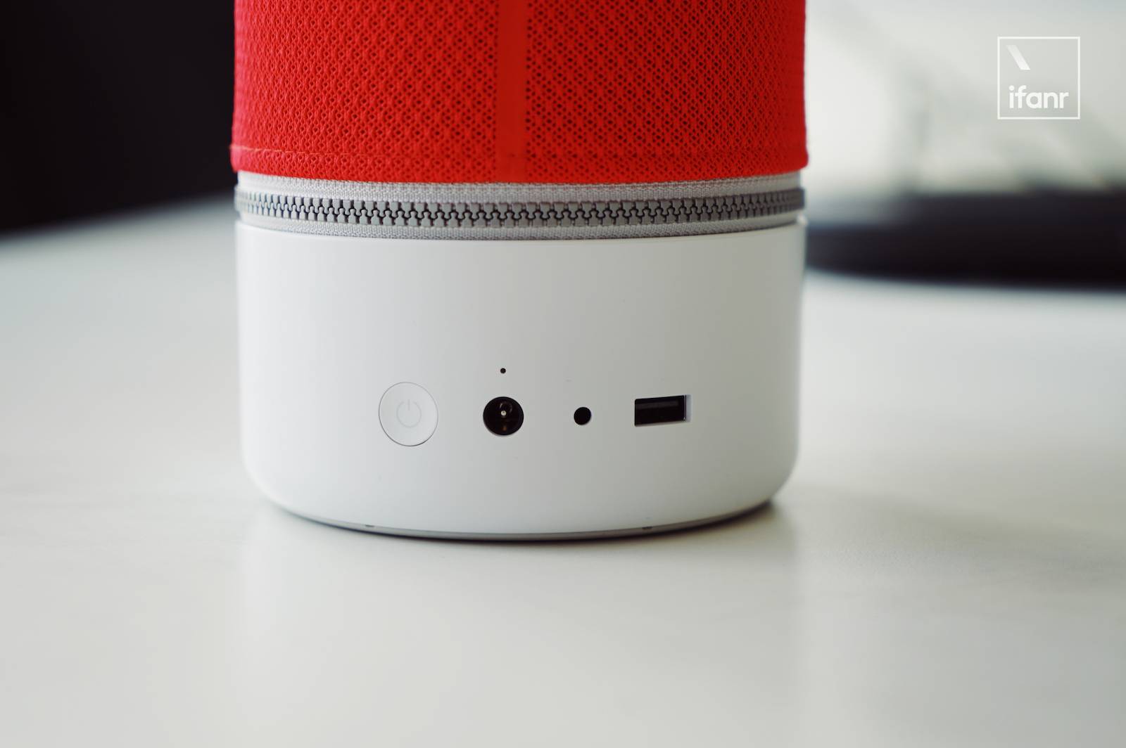 刚才提到了 ZIPP 2 的顶部有一个触控区域,呈圆形,带背光。中间是 Libratone 的夜莺 Logo。除了开关之外,所有的操作都可以在这个触控区域完成。不过白色的背光虽然淡雅好看,也有声音的反馈,但实际上并不是特别醒目,我们经常说跑马灯很 Low,有一点好处是即使离得较远你也能清楚的知道音箱的工作状态。但仔细想了想,跑马灯是淡雅白二选一,我还是会选择后者吧。