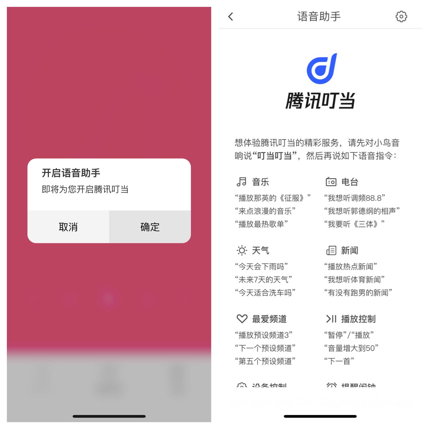 说了这么多,智能音箱中的「智能」还没有说到。ZIPP 2 搭载了腾讯的叮当助手,唤醒词是「叮当叮当」,唤醒成功的音效也比较有意思,是一声清脆的鸟鸣,倒是很符合小鸟音响这个品牌。因为底部的 6 麦克风阵列,所以叮当助手的唤醒非常容易,不需要对着音箱也不需要提高音量,直接正常说话即可唤醒。不过功能实现上还是那老几样,音乐播放(曲库来自 QQ 音乐)和控制、天气和新闻播报,以及电台节目等等。对我来说最方便的应该是随时可以语音播放和停止,至于天气和新闻,看一眼手机能获取更多的信息量。