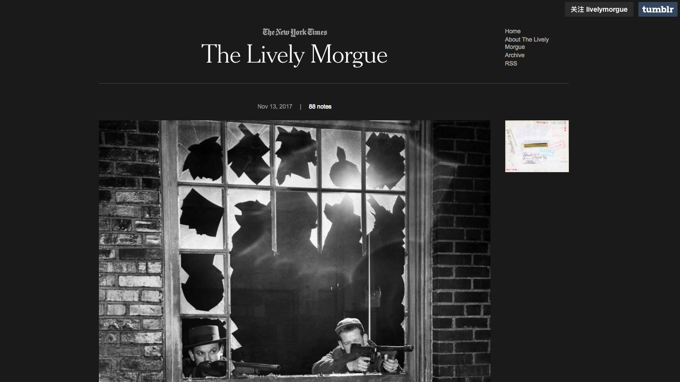 当时它建了一个 Tumblr 页面「The Lively Morgue」,每周向公众分享档案库里的一张老照片,同时讲述它背后的故事,吸引了超过 10 万粉丝关注。