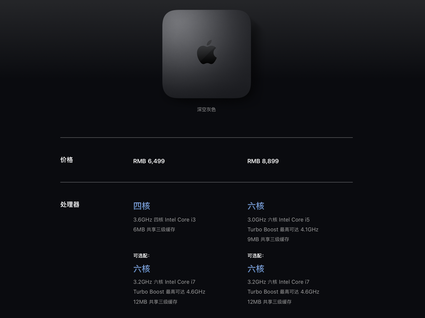 虽然入门价提高到了 6499 元,还是不带显示器和键鼠外设的情况下,但 Mac mini 依旧是你能买到的最便宜的 macOS 设备。而且即便是最低配的 Mac mini,标配的四核 i3、8GB 内存和 128GB 的 SSD 固态硬盘也能完成轻度办公。