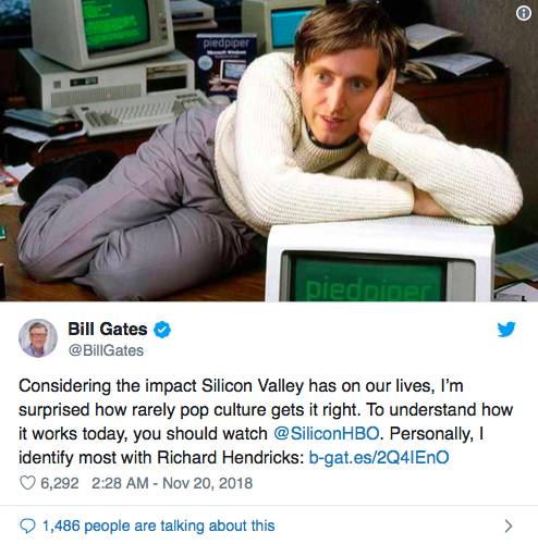 今天,盖茨在 Twitter 上为《硅谷》站台,表示「如果你想了解现在的硅谷,你就该看《硅谷》」。