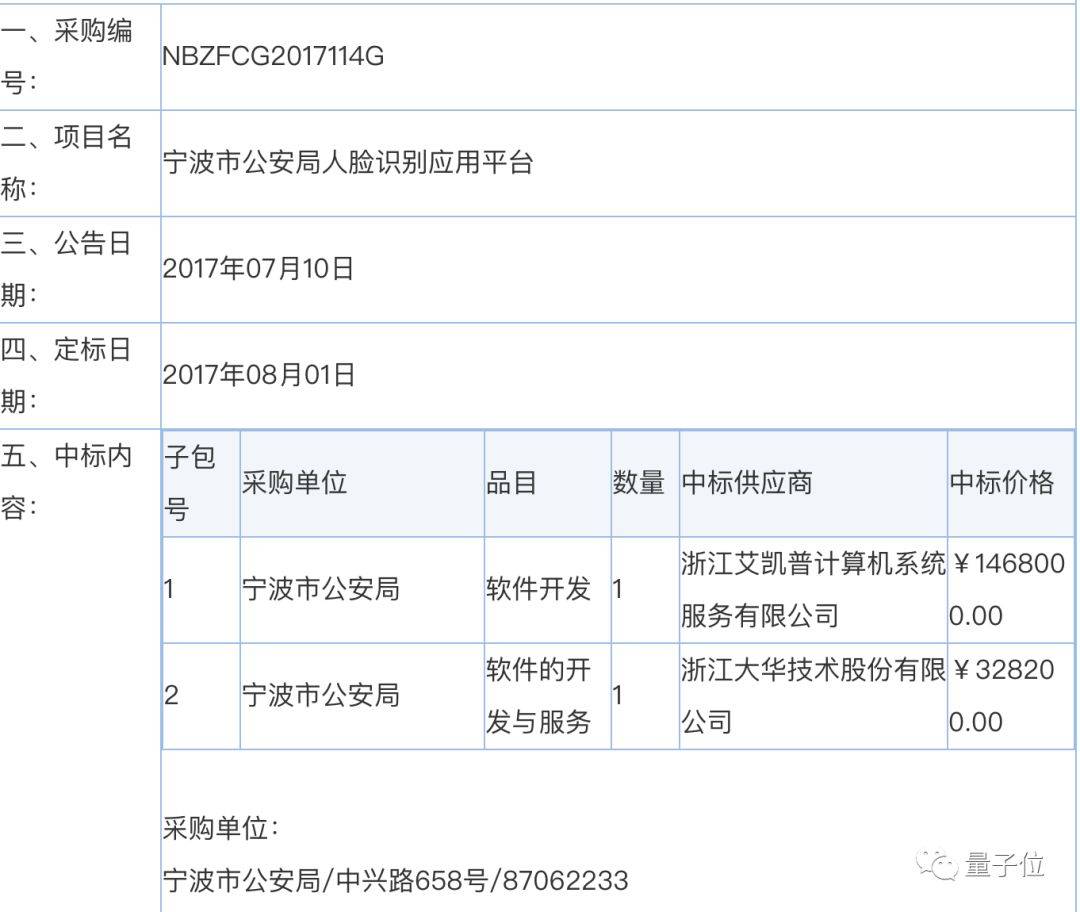 至于目前在用的究竟是哪家公司的技术…… 很遗憾,量子位尝试联系招标的宁波市公安局和招标公司,未得到更为明确的信息。