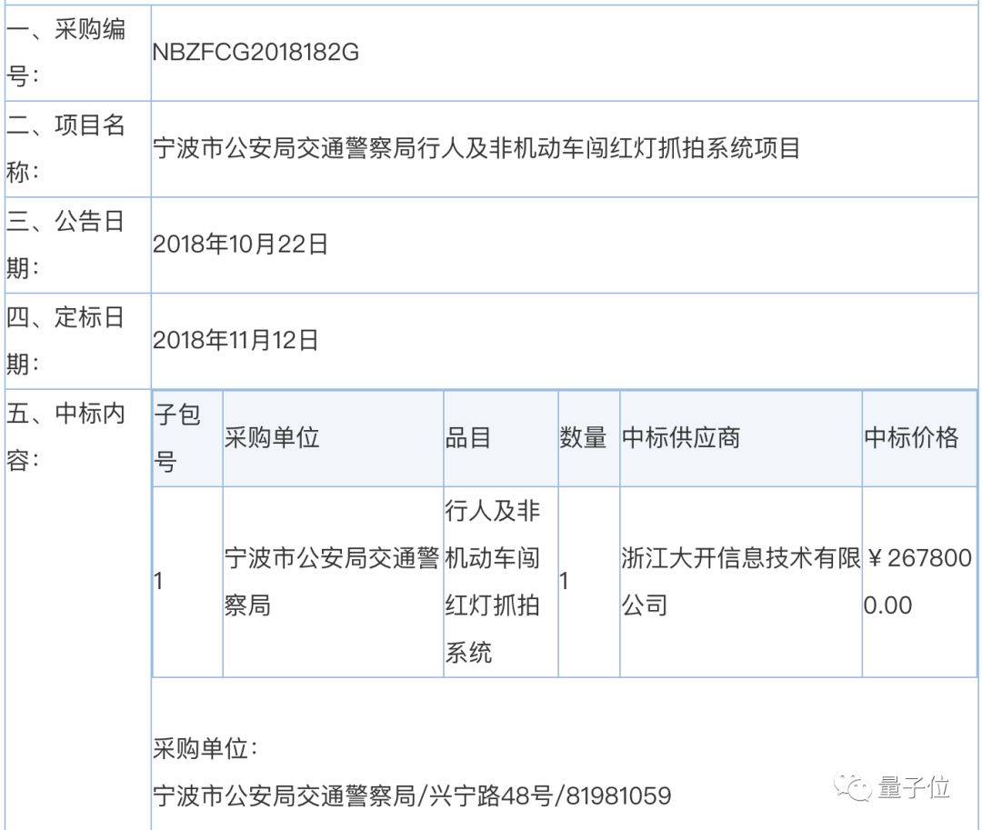 根据宁波市公共资源交易中心公开的信息,这个系统是宁波市公安局交通警察局今年 11 月 12 日采购的,供应商叫做 「浙江大开信息技术有限公司」,价格是 267.8 万元。