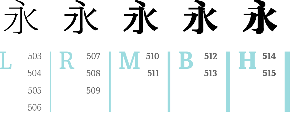 那么,就从黑体开始吧,「悠黑」的骨架加上「宋体」的特征,这就是「方正悠宋」的基本形态。