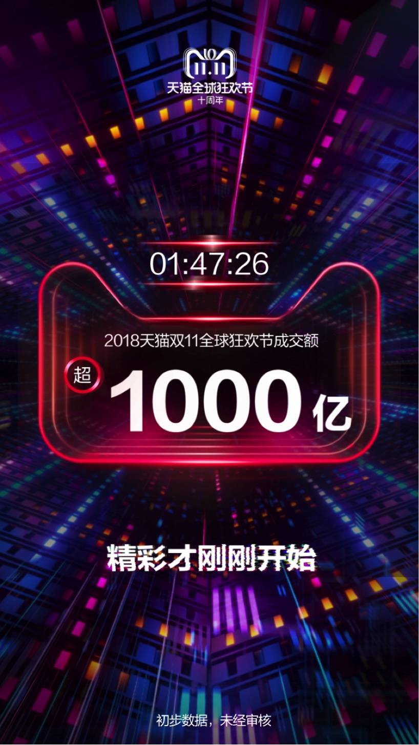 突破 1000 亿,去年用了 9 小时,而今年却只花了 1 小时 47 分 26 秒。