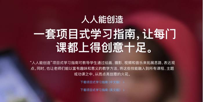 苹果推出的「人人能创造」(Everyone Can Create)免费课程,通过绘画、摄影、视频和音乐来帮助学生表达观点、扩展思路,同时帮助老师以更加生动的方式进行教学。目前这套教程的中文版内容已经上线,可免费下载。
