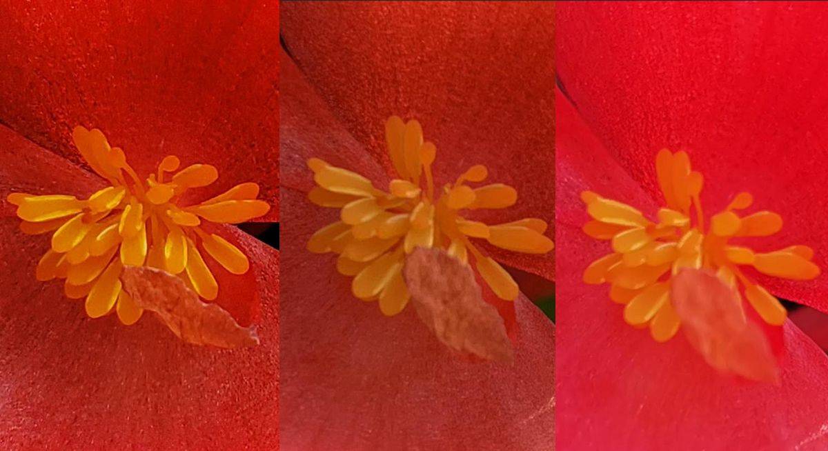 Galaxy Note9 则是在另一个方向上行找平衡,因为没有大幅度提高图像饱和度,Note9 这里的细节得以保留,花瓣和花蕊的细节感会比另外两张要再突出一点。