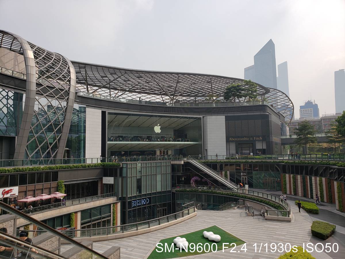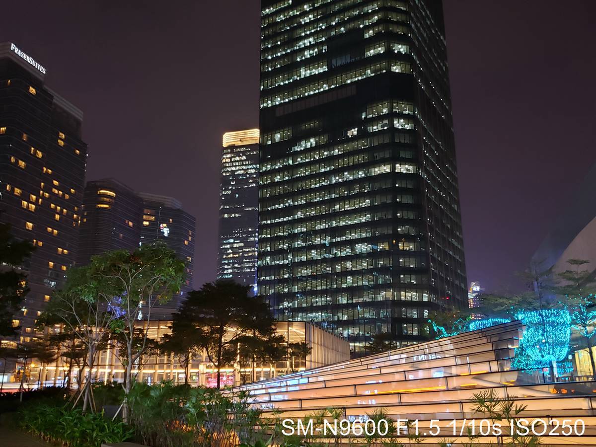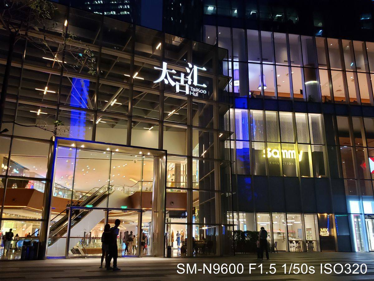 相比之下,Galaxy Note9 会有大幅度提高亮度的状况,有些时候会让画面出现略不自然的高曝光。加之,因为亮度推高了,路灯这种高光位就会过曝,一定程度上影响了照片观感。