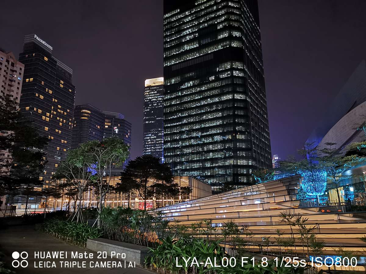 在夜间方面的表现也一样,两款同样被称为「夜视仪」的 Android 旗舰都有很好的弱光拍摄能力。它们已经不需要在「晚上能不能拍清楚」这个问题上纠结,有更多的空间去研究「怎样拍更好看」的问题上。所以你也会看到,Galaxy Note9 和 Mate 20 Pro 在大幅度提升照片亮度的同时,也做了不少画面上的优化。