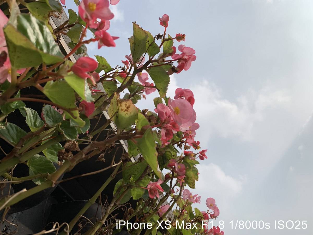 爆炸级别的高饱和度和色彩鲜艳度,直接就把图片的视觉冲击力拉高了。但是这样,就让花瓣的细节不能很好地呈现。相比之下,Galaxy Note9 和 iPhone 的表现会相对自然一点。