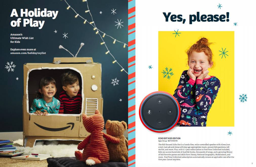 圣诞临近,亚马逊将首次向用户寄出纸质玩具礼品目录《A Holiday of Play》,并在产品旁附上二维码方便购物。这被视为亚马逊对玩具反斗城破产后对市场的抢占,用户还可以在其线下书店等地拿到册子。