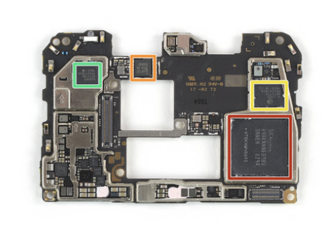 红色:海力士 H9HKNNNEBMBUDR-NEH LPDDR4(麒麟 980 可能就在这下面)