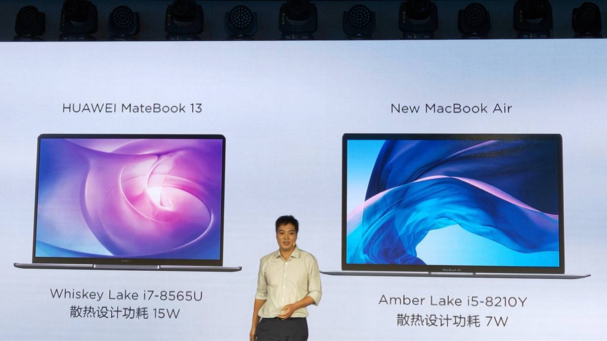 首先,华为表示,新款 MacBook Air 用的是一款 TDP 功耗为 7W 的英特尔酷睿 i5-8210Y,而 MateBook 13 用的是 TDP 功耗为 15W 的英特尔酷睿 i7-8565U,还配了满血版的 MX150 显卡,性能要强不少,至少能玩一下中型网游。MateBook 13 标配的 8GB 内存应付一般商务需求没什么问题,硬盘容量则分为了 256GB SSD 和 512GB SSD 两种。