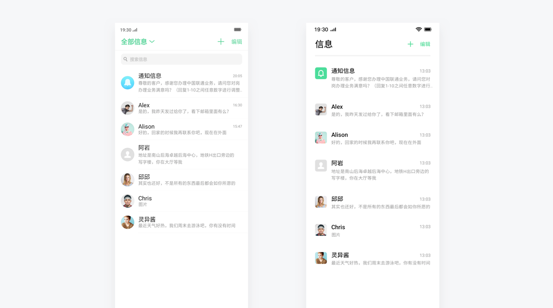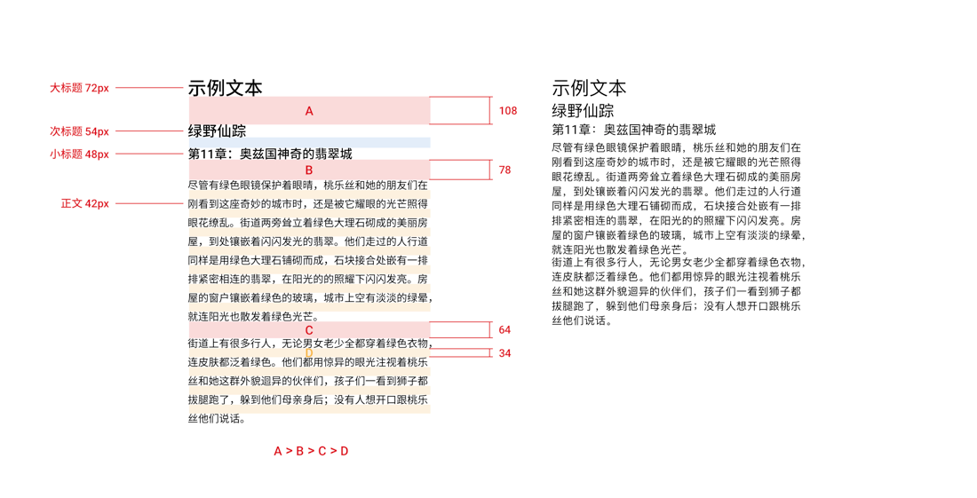 陈希特别强调,在 ColorOS 6 的设计方面,「大标题和小标题的间距,大于小标题和内容的间距,段落之间的间距又大于行与行之间的间距,这其中有严密而精确的数学和逻辑,但是用户并不需要理解这种复杂关系,反而是在直觉上就能感知这种空白制造的节奏感和逻辑层次感」。当然,这是最显而易见的排版效果,面对不同的需求和界面,排版效果也需要随之改变。