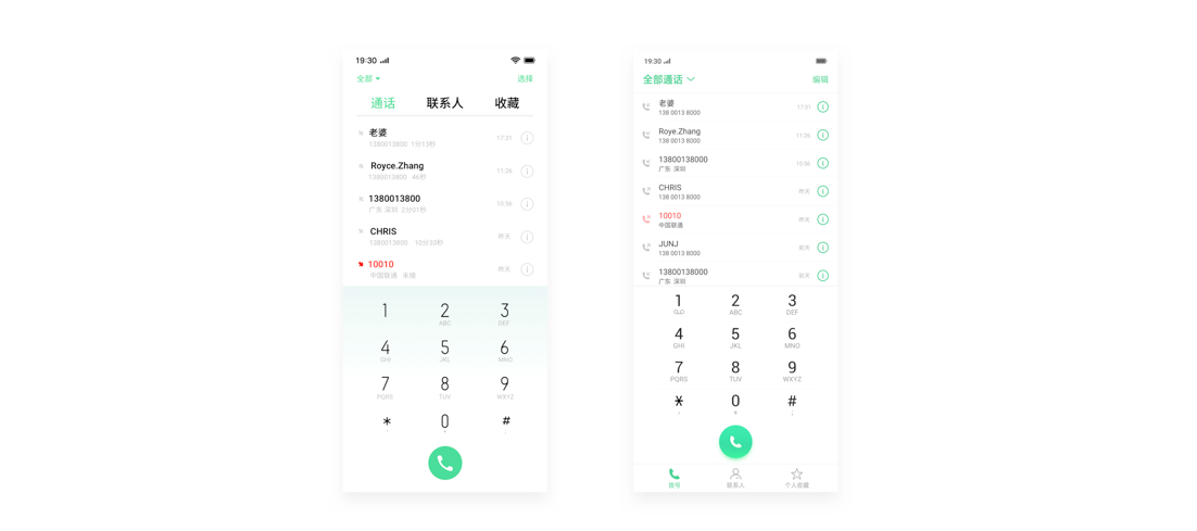 在 ColorOS 6 和前代版本的拨号界面对比中我们可以看到,实际上左边新的拨号盘用了更多的字体字重和颜色,但是新的拨号界面反而更明晰,除了界面布局的原因,就是颜色起到的作用了。