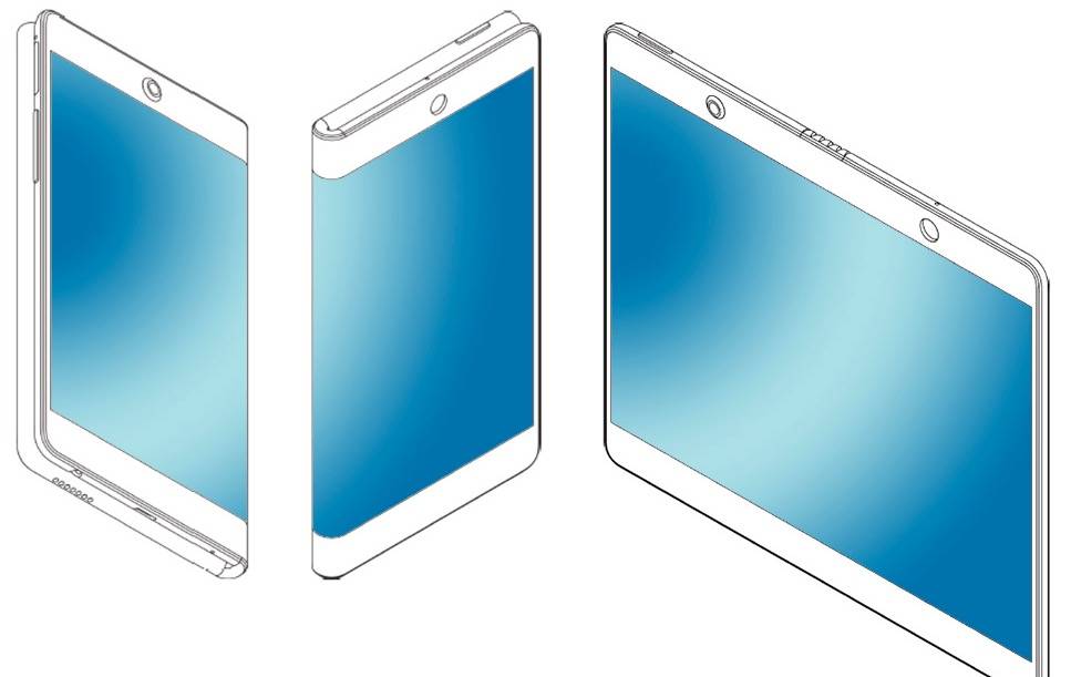 基于这个设计思路,我们也能够从专利图片中看到机身正反两侧都会有两个开孔,那相信是给摄像头做准备的。图像中突出的是摄像头的一侧,然后再在对面那侧加入对应的开孔,以便于在两种翻折模式下嵌入摄像头。