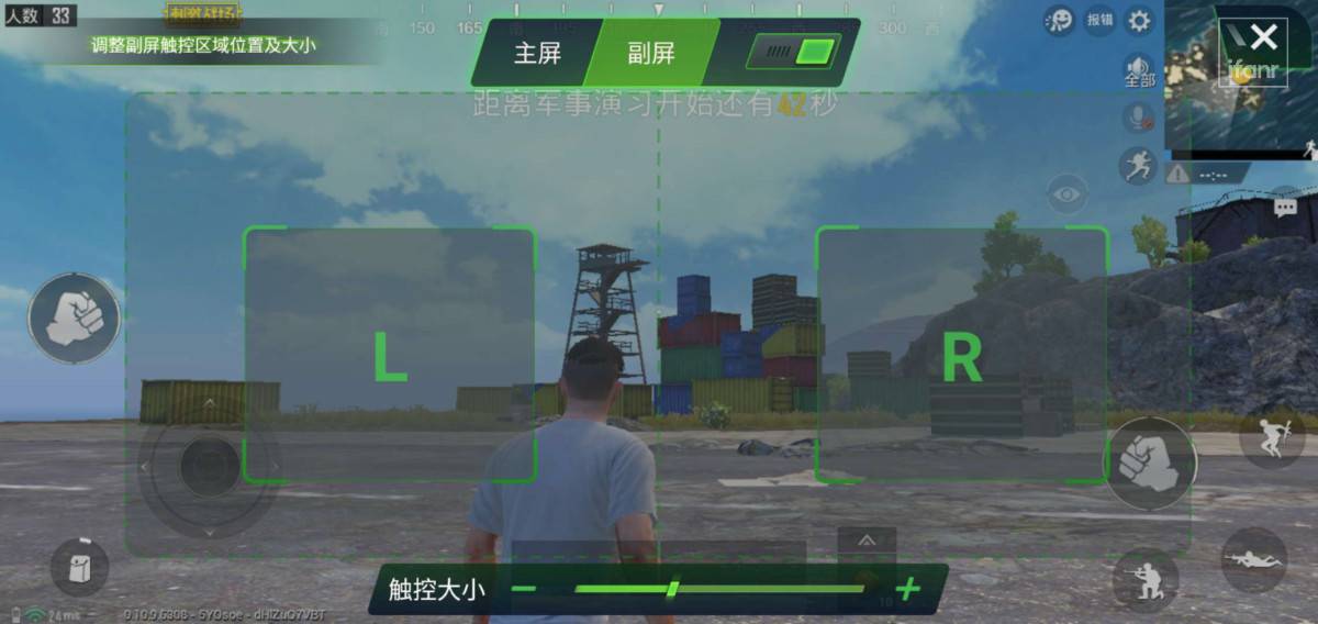 另外,努比亚 X 的副屏中还加入了名为 「FullTouch」的游戏触控功能。该功能其实就类似于之前 PSV 背部上的触控板。当用户进入游戏后,可将游戏中的两个按键映射在副屏的左右两个区域中。举个例子,在《绝地求生刺激战场》中,我将副屏的左右两边分别映射成开镜和射击。设置成功后,如果我需要在游戏中进行这两个操作,直接在背部的副屏上点按即可。